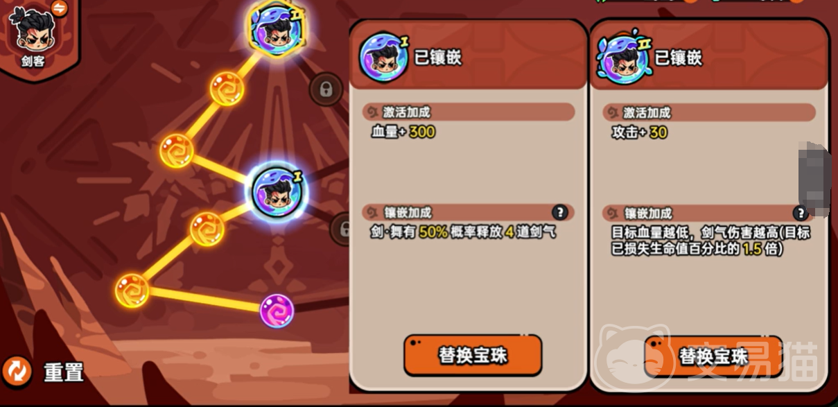 剑客在属性数据方面都很不错,比如在三星时的生命值可到达一千多,攻击伤害也有一百二十五,速度更是有七百五十。因此他天生就有着很强的速度优势以及存活能力。况且每次普通攻击能有30%的几率触发出额外伤害,所以伤害方面也很不错,加点方面可以按照下图来点。