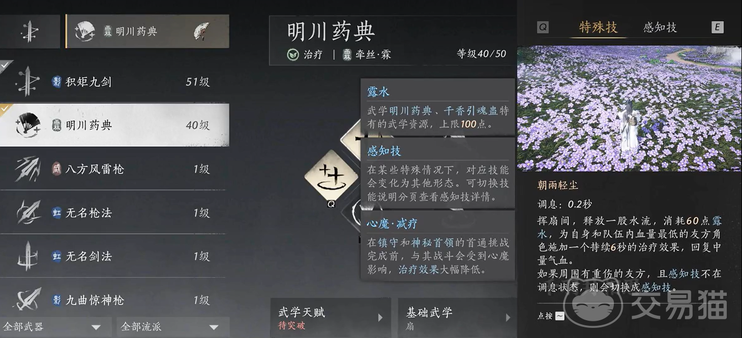 首先,我们从武学开始。武学是提升实力的关键,也是探索地图的第一步。第一门武学叫“明川药典”,它位于百草野区域的上方靠近小路的位置。传送过去后往北走,会发现一个洞穴,进入洞穴后一路向深处走。在洞穴最深处,你会看到一位练功的高手,对其使用“偷师”功能就能学到这门武学。接下来是第二门武学“青衫执笔”。这门武学位于善妙洲最右上方的传送点附近。传送过去后,朝湖泊方向走,然后左转进入一个山谷。山谷里有机关,触发机关后会出现一个隐藏的洞穴。进入洞穴后,继续“偷师”操作即可拿到这门武学。