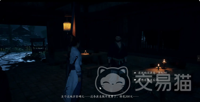 先是任务的触发,需要将自己传送至隐月山左上角的丰禾村,在这里找到NPC店小二也就是三钱儿,与他展开交流,直接选择“花钱购买消息”,就能触发任务了。选择不花钱的话,天泉长老是不会出现的,就不能继续任务了。接下来就是寻找天泉长老,根据任务的图标指引就能找到他。