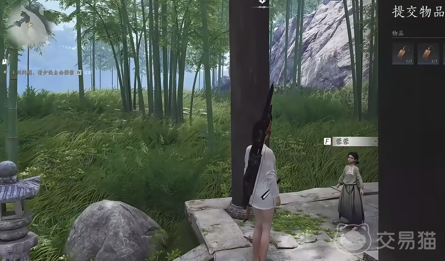 首先,玩家需要前往北竹林,找到NPC蓉蓉并与其对话。对话后,任务提示要想拿到《大侠秘籍》,必须先完成大侠的三道试炼:砍倒最粗的树,射落飞得最高的鸟,以及爬上没有梯子的瞭望塔。这三道试炼应当就在这北竹林附近。