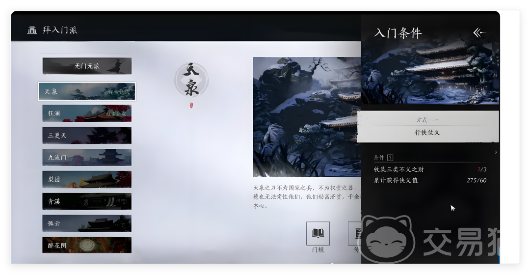 大家在燕云十六声中都找到了以及想要加入的门派了吗,游戏的门派可是有着不少的选择性的,天泉门派也是玩家看好的门派之一,虽然有玩家想要加入天泉门派,可是却苦于不知道燕云十六声加入天泉门派的方法,一直无法成为门派弟子,小编小面就把天泉门派的加入方法分享出来。