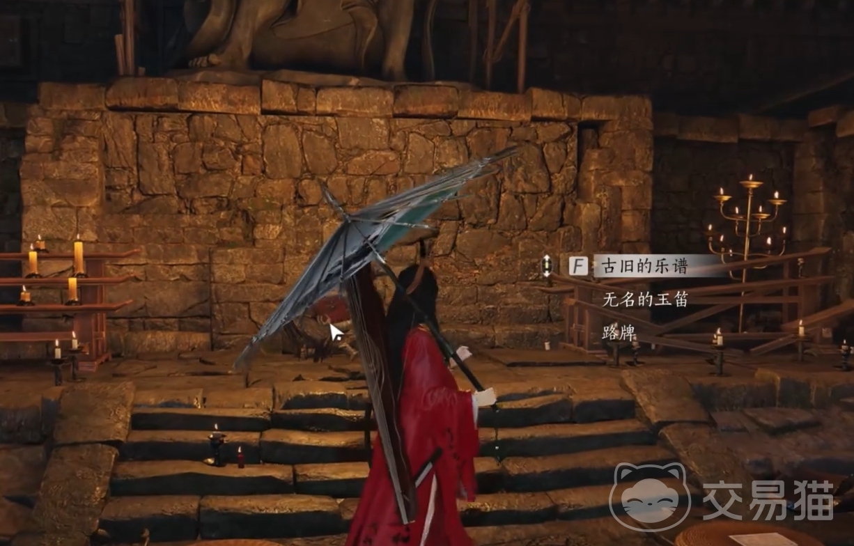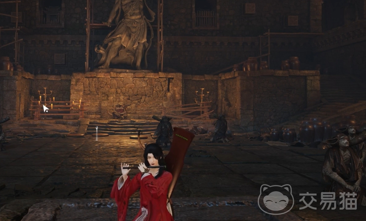 先与乐谱交互后便能触发剧情,过完后便能与台阶上的无面人对话,获取玉笛和乐谱(思芳歌)的信息,接下来玩家们只要坐在大厅中间开启大门的机关上,用笛子吹奏刚刚演奏的思芳歌,就能将周围的无面人召唤过来帮助自己压住机关,使得自己能推开大门。