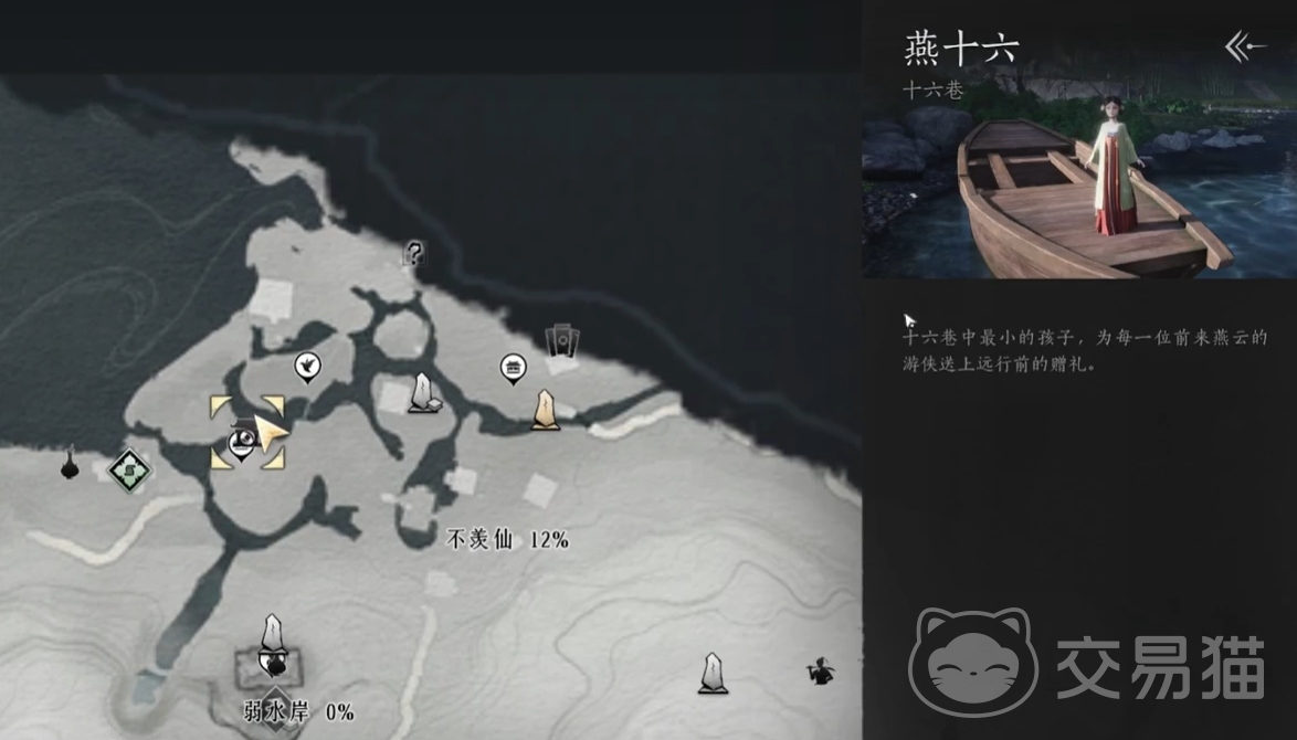 在领取纪念时装之前,玩家们先要去推进主线,并解锁不羡仙地图以及该地区的传送点,全部弄好后便能直接传送到不羡仙,往南边走就能看到一位小女孩站在船头,她旁边还有一个很高大的树木,这就是能领取纪念时装的NPC燕十六。