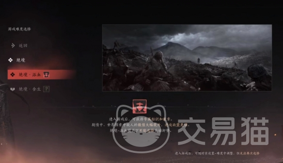 最后是最高难度绝境舍生,这里的敌人数值以及攻击力均达到了顶峰,并且增加了BOSS的技能招式。游戏难度在创建角色时就需要选择了,而且选定后不能更改的。