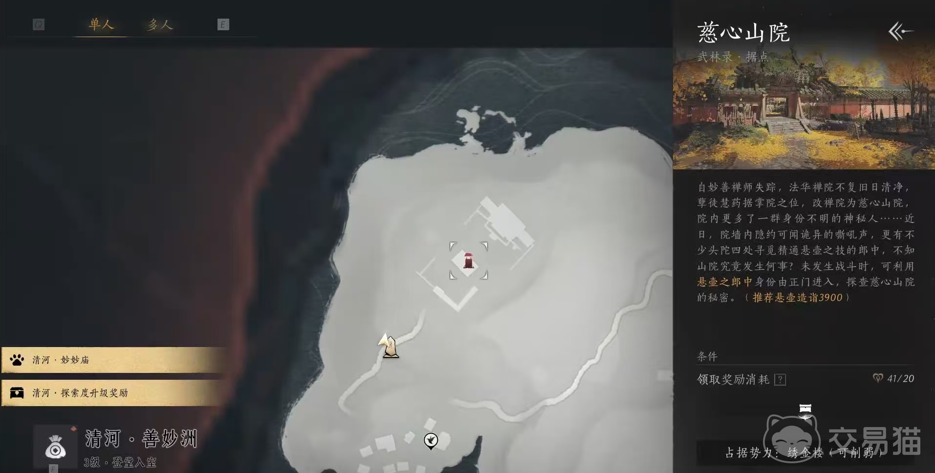 该心法获取的方式也比较简单,首先打开地图直接来到清河的慈心山院,来到慈心山院旁边的传送点后,直接进入到慈心山院里面,需要等待一段时间,敌人刷新之后,将该区域内的所有怪物全部击杀掉,清理完怪物后就可以获得心法春雷篇了。整个战斗并不算困难,而且在消灭所有怪物后,据点也会随之攻占,所以大家在发聚点的时候,顺便就能将这个心法拿到手中了。