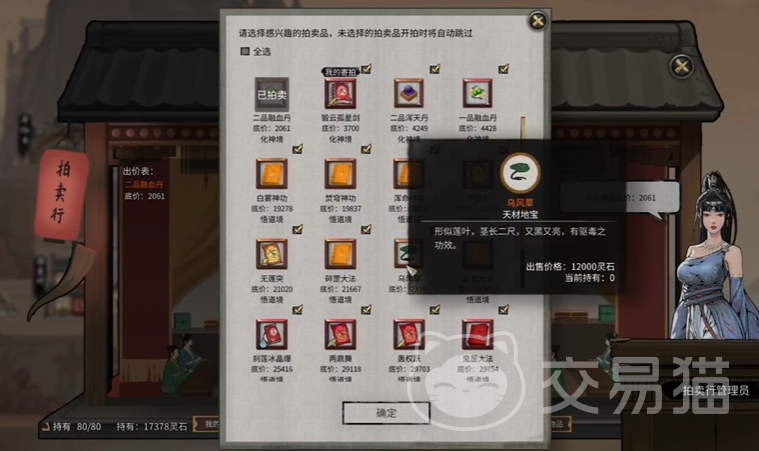 对于那些不愿在野外耗费大量时间的修仙者而言,拍卖行无疑是另一种快捷的选择。当玩家修为达到化神境,并穿越永恒冰原抵达暮仙州后,便可参与拍卖行的竞拍。乌风草因其稀有性,竞拍价格通常在1万2000灵石左右,这对玩家的经济状况提出了严峻考验。而拍卖行的魅力不仅在于通过资源换取稀缺物资,更在于修仙者之间的明争暗斗。玩家可以选择在拍卖结束后与对方商议,通过礼物或交易换取乌风草,也可以采取更为激进的方式,比如挑战对方,将其战败后直接夺取。