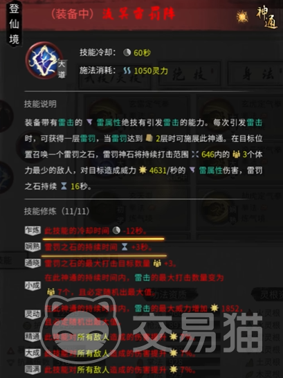 对于神通技能,天雷劫无疑是雷修的核心神通。这一技能以其范围性与高额伤害著称,释放后雷电从天而降,对范围内的敌人造成毁灭性重创。天雷劫在面对群体敌人或秘境首领时,能够迅速扭转战局,将雷修的爆发能力提升至极致。建议搭配增加范围或伤害的词条,使天雷劫的效果最大化,形成一击制敌的震撼效果。