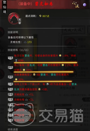 功法的选择则以雷系大法与秘卷为主。雷系功法能够提供大量的雷属性伤害加成,是每一位雷修玩家不可或缺的基础资源。在秘卷选择上,可以优先考虑冷却缩减类词条或增加雷球数量的效果,这些秘卷能够进一步强化雷修的技能循环,使其输出更加流畅。在战斗中,通过功法与技能的紧密配合,雷修能够轻松在敌人中穿梭,将雷电之力倾注于每一次攻击中,展现出雷修特有的战斗风采。