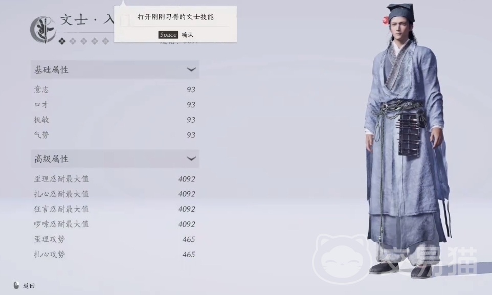 完成话术游戏后再和门口的怀瑾对话,就能在主面板上就解锁【文士】这个板块。