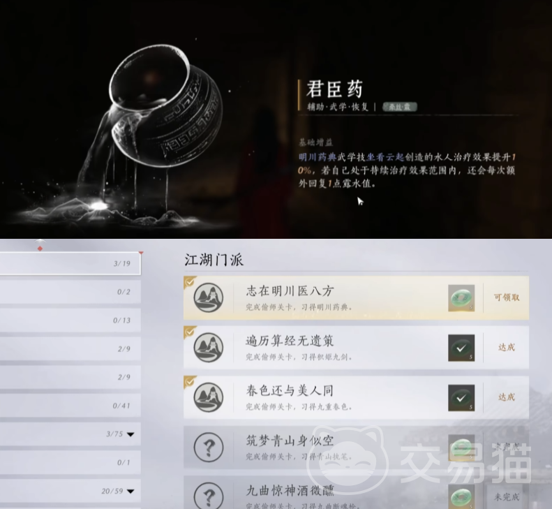 燕云十六声里有许多不同的心法,这些心法的获取通常需要完成一些任务,或是去往特定地点开启那里的宝箱。有玩家想知道燕云十六声君臣药心法获取方法,这是明川药店武学的配套心法,而明川药典这个武学基本是玩家必带的加血武学,所以君臣药这个心法也势必要拿到手。