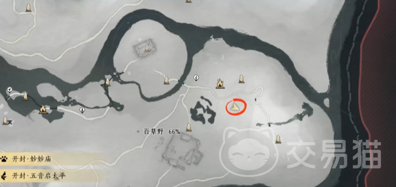 先是打开地图找到清河·百草野,找到如图红色圈圈标记的位置,是在竹林旧居附近。来到一处关闭的洞门前,使用游龙钥,放在前面的装置上打开洞门。