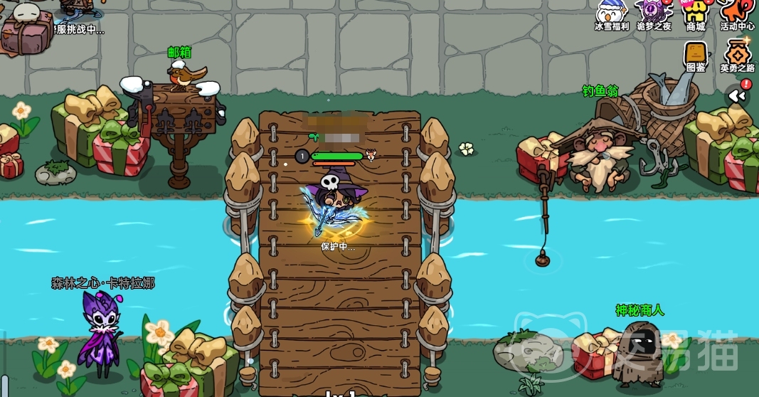 在大家进入游戏中后,只要先找到对应的传送门,然后一直沿着小桥的位置往下走去就可以,不过在此期间一定不能离开安全区,一直往右移动就可以了,当各位看到了神秘商人后,就能顺利见到旁边的白胡子老头,他就是智者梅林了。