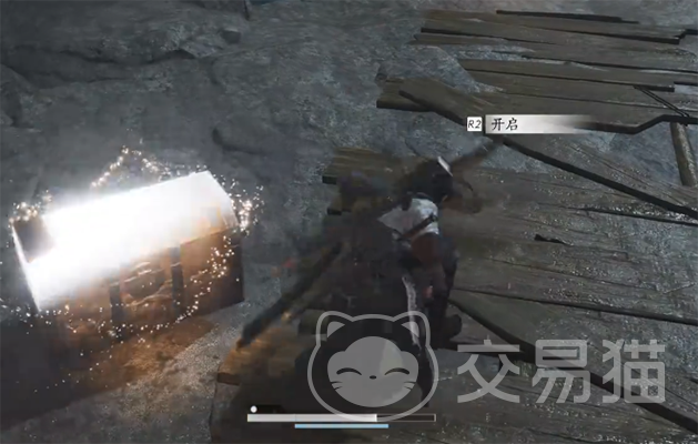 寻找第一个宝箱:根据藏宝图的提示,找到位于山洞口的第一个宝箱区域,使用火箭炸开大门,在大门的附近可以找到宝箱,这个宝箱位于山洞的瀑布处,玩家可以选择进入到瀑布之中,也可以点燃火炬,破解机关,但直接进入瀑布后面会更方便,在此处玩家会获得两个宝箱以及武学残页。