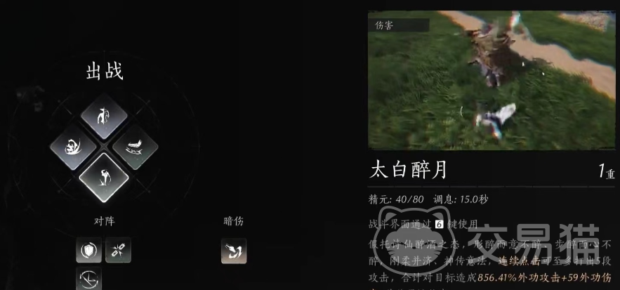 说到太白醉月这个技能,其实它也是比较好用的,在实战中表现的非常的出色,它其实需要使用者先喝下烈酒,然后处于醉酒的状态,一旦醉酒之后就可以施展该技能,在施展该技能的时候可以连续点击打出五段攻击,而每段攻击都会消耗玩家的精元值,并且对目标施加酒气的效果,最终会对目标造成高额的伤害。
