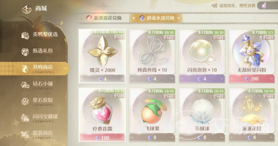 在游戏的商城里面,玩家可以利用材料或者是货币来进行兑换,这时候能够获得澎湃浪花,不过玩家在使用的时候是会有所要求的,比如利用澎湃浪花去兑换其他的物品,在数量方面会有限制。