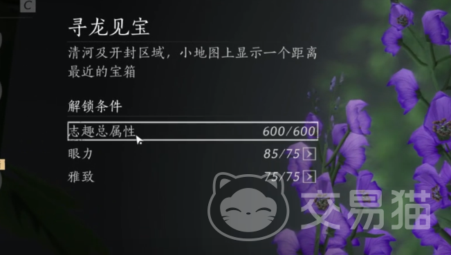 玩家如果想要获取,就可以在角色的探索属性里面去满足对应的条件,例如志趣总的属性必须要达到600点。眼力也必须要达到75点,其中要想有效提升眼力,也可以通过多种不同的方式,例如射箭玩法还有蹊跷玩法。