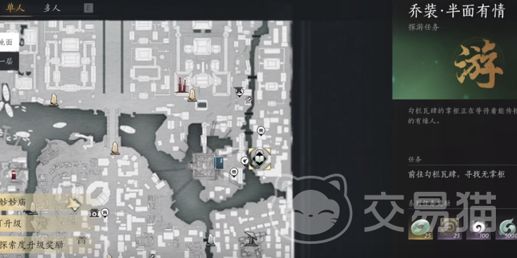 要想解锁易容的功能,还需要乔装半面有情任务,一旦在完成任务之后就可以解锁功能。并且画眉等级还需要符合二级左右。