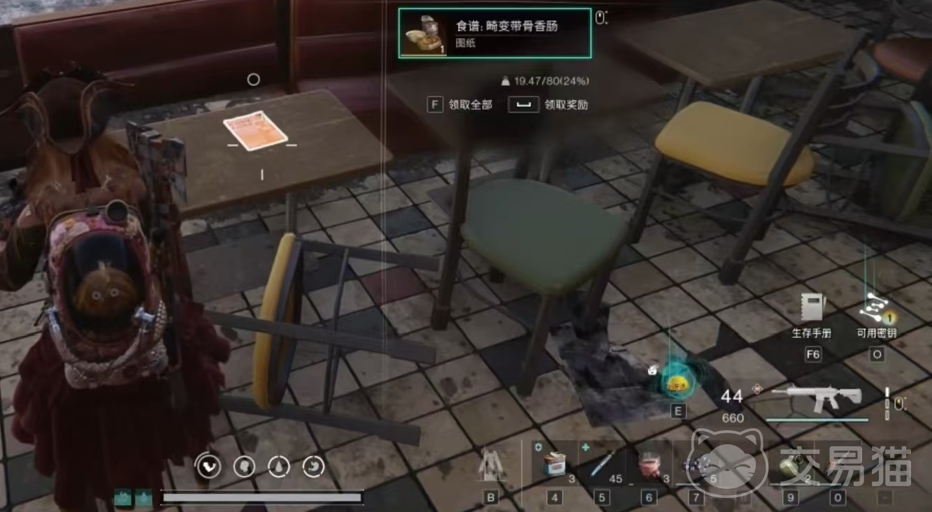 要想获得畸变带骨香肠,需要先获得对应的食谱,这也是游戏中的一项通用设计,绝大多数实物都是先通过获取食谱,然后搜集对应的材料才能制作出来。畸变带骨香肠食谱的位置在黑原陷落区,打开地图之后来到黑原陷落区,在地图中会找到一家餐厅,餐厅上面挂着公鸡的标志,很容易就能。寻找到进入餐厅之后,向左转找到后厨所在的位置,在后厨的桌子上有一个发光的红色道具,上前直接进行互动,拾取后就可以获得畸变带骨香肠的食谱了。