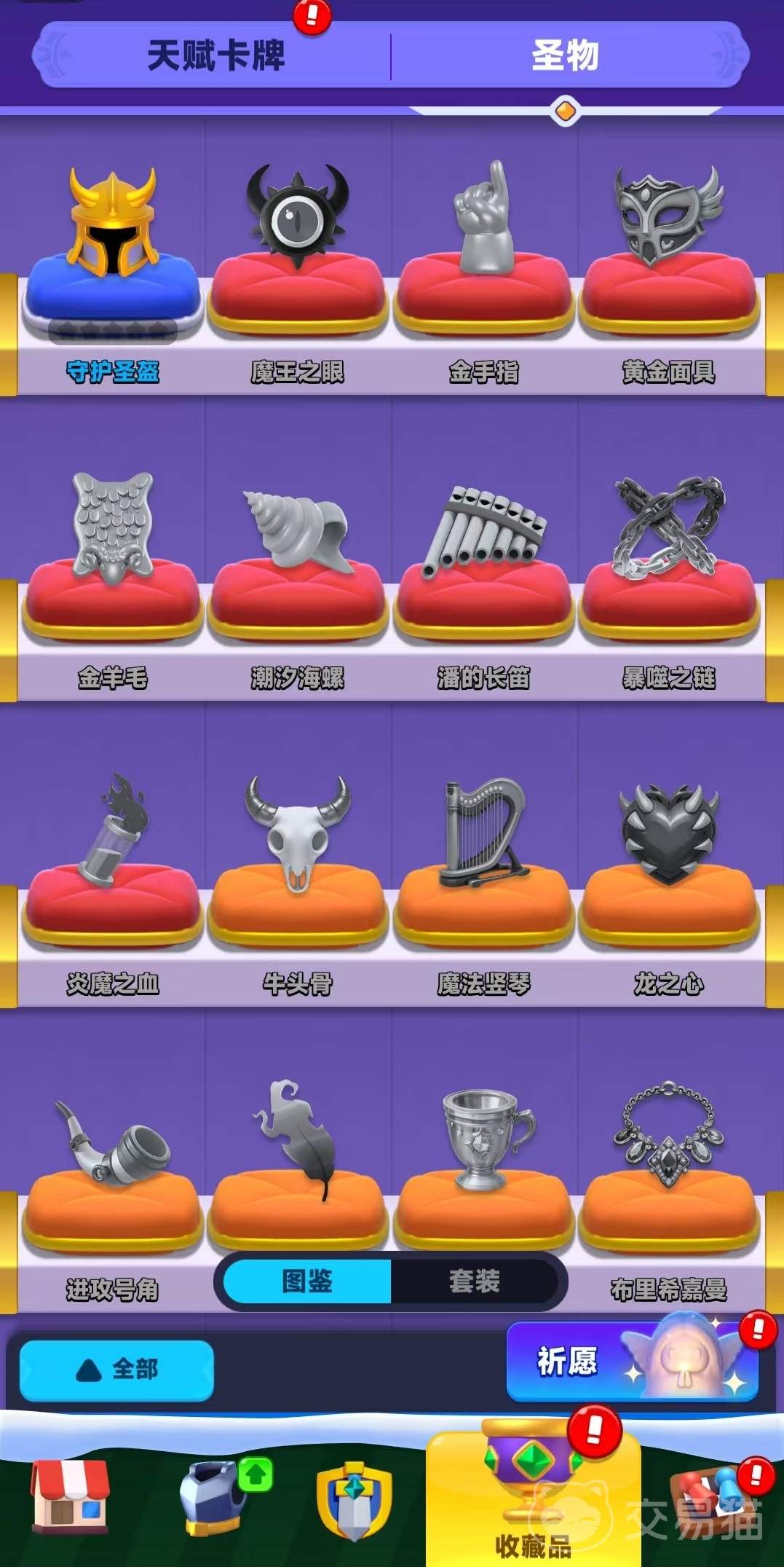 还有另外一个圣物选项,收集这些圣物,也能够提高基础属性,其中大多数都有最大生命值提升。天赋卡牌是通过抽卡来获得,圣物则是在祈愿中抽取得到。圣物提升的属性往往非常高,所以获取起来也有一定的难度。除了上面这两项之外,再做到了装备环节,装备也是提高生命值的一大方式,例如护甲,头盔,鞋子等,都可以提高生命值,大多数附加属性都是百分比提升和固定属性提升相结合这两种模式。