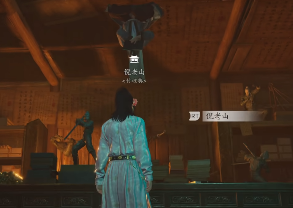在前进一段路之后咱们可以看到一个光亮处,在这里咱们进行左转,这里可以看到一个不是很起眼的店铺。咱们在这里和NPC对话可以购买不知名旧书的物品,这个物品在鉴定后便有着几率可以获取到纵横剑气的残页。