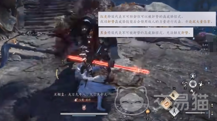 首先游戏中的卸势判定非常严格,对于不是想挑战自我的玩家来说,不建议去练习卸势,因为连段想要卸势成功需要纯背板练习,在游戏的前期设计中大部分突进攻击都是在玩家被吓一跳的时候乱按都能不小心卸势成功,但这款游戏的大部分突进攻击都需要严格测试时机去背板,关于卸势boss连段,其实不用全卸势,只要会第一下就行,卸了第一段就闪避拉开。