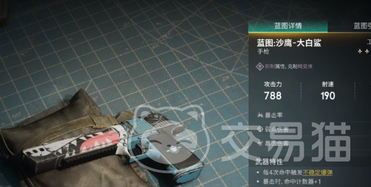 沙鹰 - 大白鲨:可以有效造成混伤属性,在任何的环境下都有一个出色的表现,因此也会得到大家的青睐。拥有出色的优势,而且实力强劲。射击的速度为190,暴击率达到6%,暴击伤害为25%,弱点伤害为6%。武器的特性就是每4次在命中之后暴击时就可以增加一个命中计数器,一旦在命中暴击爆炸元素还可以增加30%,在持续8秒内都有效果。
