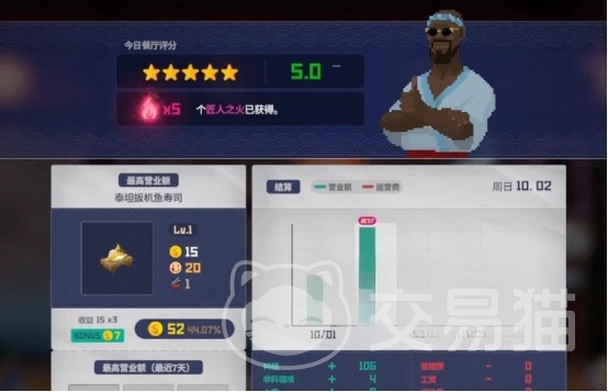除了食材供应,员工的分配与能力也在铂金等级的经营中扮演着至关重要的角色。面对35名顾客的高峰流量,玩家需要根据员工的属性来安排具体任务,例如让擅长料理的员工专注于寿司制作,而将服务效率高的员工安排在前台接待顾客,这样能够有效缓解经营压力。同时,定期提升员工的技能和状态也是保持餐厅高效运作的重要手段,尤其是在顾客等待时间较短的情况下,员工的能力提升可以显著提高整体服务质量,从而避免顾客因等待时间过长而降低满意度。