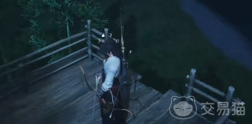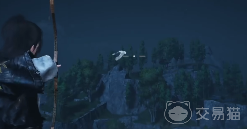 完成第一段剧情以后,往左前方走,一直到悬崖峭壁以后通过轻功一直走到最高点,可以看到在不远处的天空中有一只不断盘旋的大白鸟,需要大家使用弓箭把这只鸟击落才能获取到第二个木牌。白鸟的运动轨迹是固定的,但是它飞起来比较迅速,所以在瞄准的时候最好先预估一下它的轨迹以及提前射箭的时机,这样才能用最小的次数完成第二个小试炼。