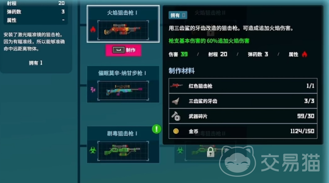 首先小编最推荐的武器就是火焰狙击枪,这把武器在游戏的前期就能够获得,并且能够直接从前期用到后期。它最大的优势就是或许相当容易,不需要刷任何高级材料就可以直接做出来。伤害最高可以达到80,弹夹容量为5,射程极远,并且同时带有穿透效果。基本上到了游戏后期,玩家们会发现这把武器用来打任何boss都是相当好用的,脆弱一点的,甚至是直接秒杀。