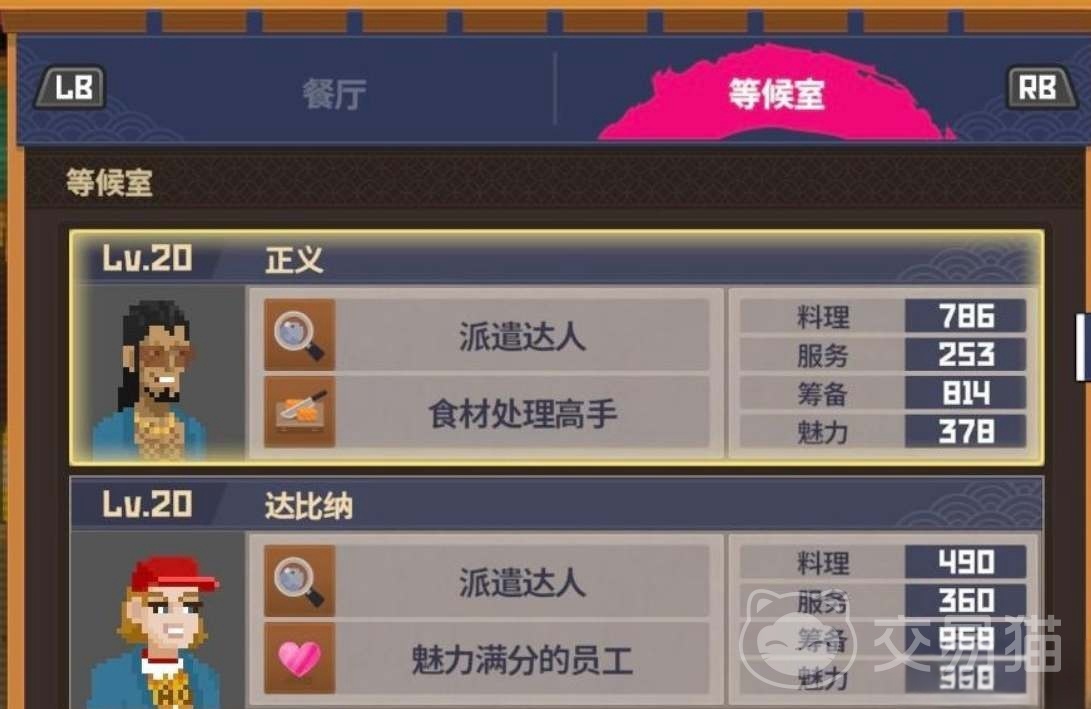 埃尔尼诺凭借超高的服务属性,成为了大堂清理工作的绝对主力。他能够迅速清理餐桌,为下一批顾客腾出空间,从而有效减少顾客的等待时间,加速座位周转。与之搭配的德瑞则专注于饮品服务,他不仅能够快速满足顾客对饮品的需求,还能够通过自己的服务技能进一步提升顾客的满意度。更重要的是,德瑞的综合属性使他在高峰期可以灵活处理多项任务,确保大堂始终处于高效运转状态。如果需要更进一步优化,詹姆斯和凯因是值得考虑的补充人选。