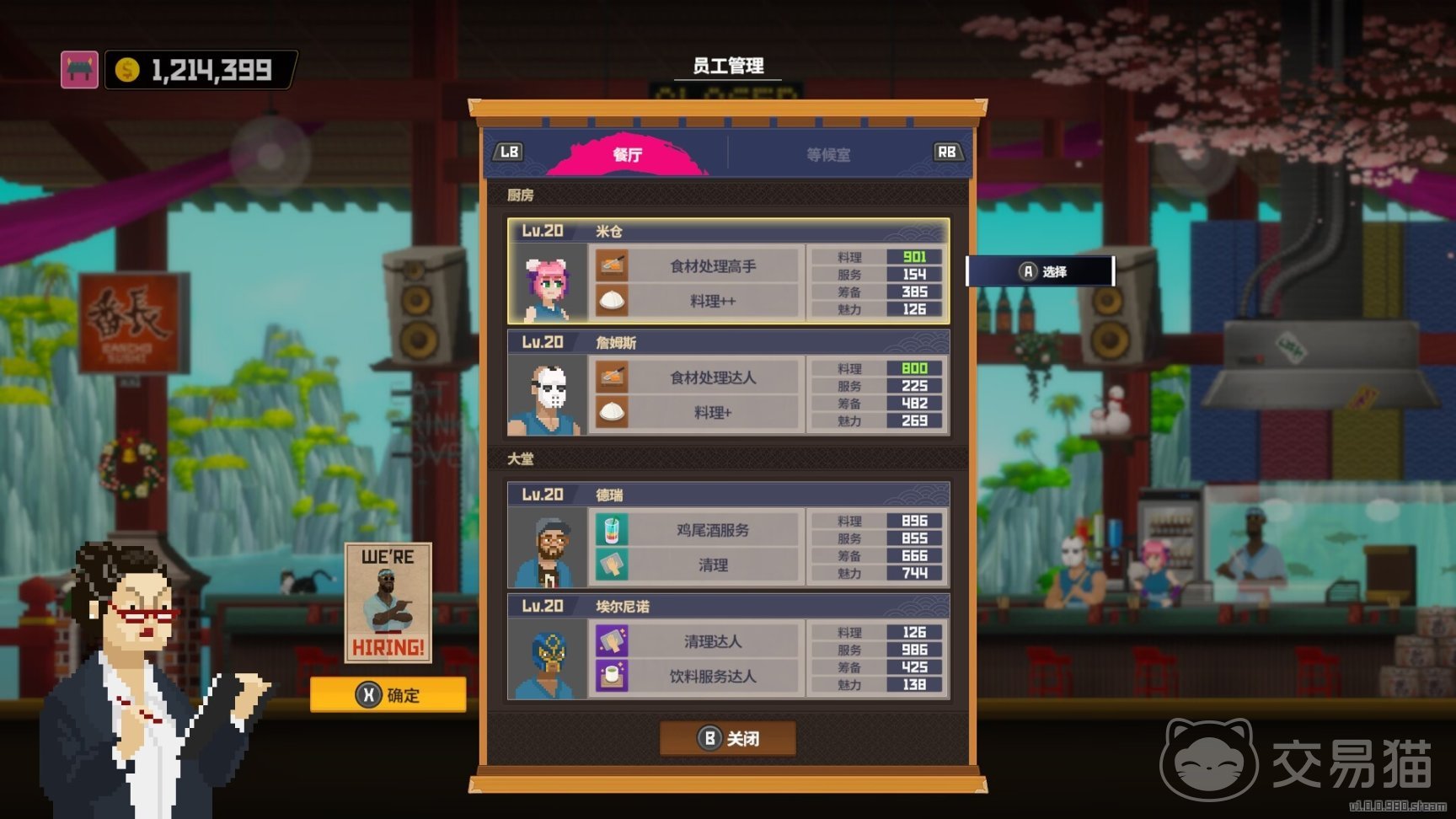 魅力属性则为派遣任务增添了更多的不确定性与收获的可能性。与筹备属性专注于数量不同,魅力属性高的员工在外派时更容易获取非指定的稀有食材。对于玩家来说,这种“意外之喜”往往能为寿司店的菜单增添更多选择,也为任务的完成带来额外的收益。尽管魅力属性不会直接影响客流量或顾客小费,但它的存在让每次派遣任务都充满了探索的乐趣和未知的期待。
