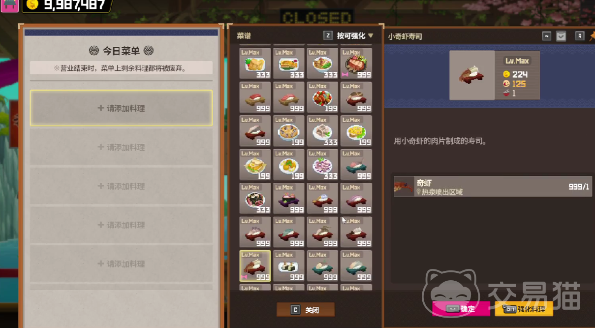 厨房方面,可以直接选用真纪或米仓,真纪制作寿司的能力会高于猛禽,固然在游戏内,玩家的分店可以用于专门制作日式或韩式的料理,而主店可以制作一些综合性高的料理。