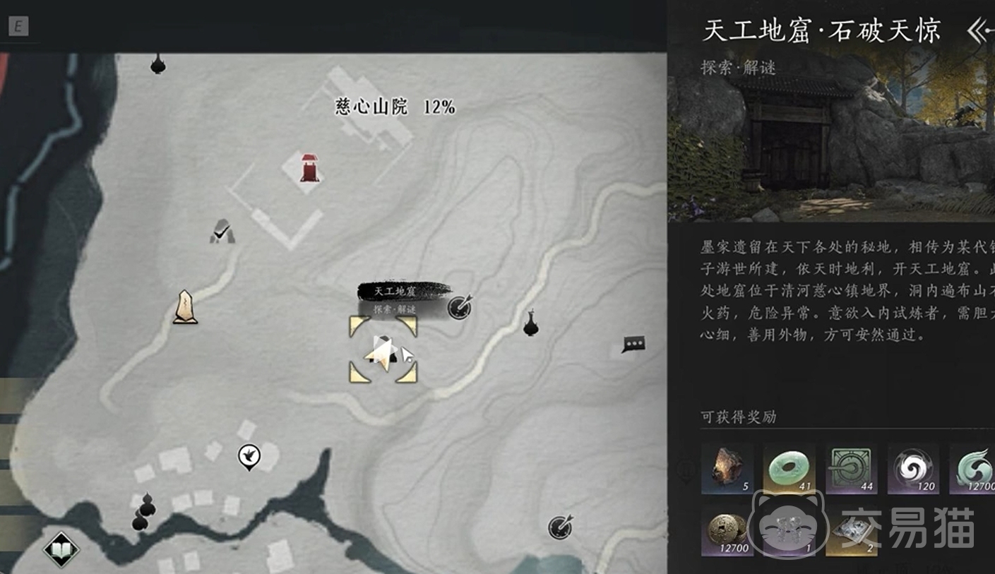首先,“石破天惊”关卡的具体位置位于慈心山院传送点的右侧。一旦进入这个关卡,玩家将遭遇一系列解谜和战斗的挑战。首先,玩家需推动机关以开启地窟大门,然后继续前行,会发现一个木制机关。启动该机关后,玩家将获得一个炸药桶,利用这个炸药桶可以炸开旁边的入口,从而获取第一个宝箱。