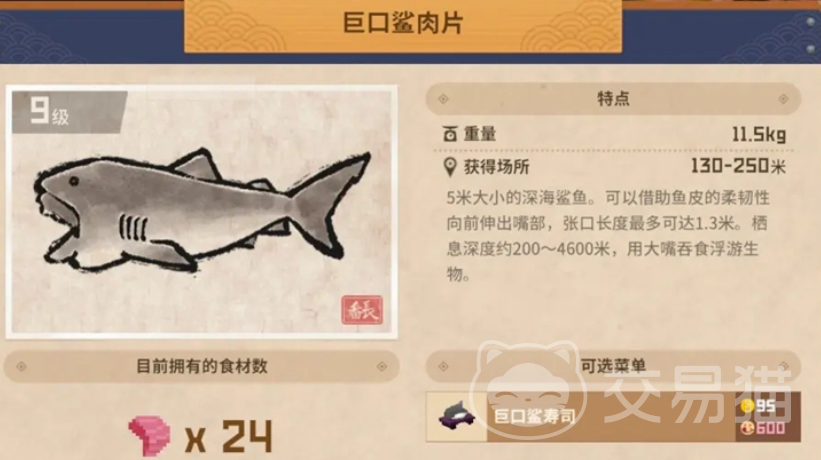 鲨鱼属于大型鱼类,捕获后无法靠自身带走,因此需要呼叫拖船来带走,这里最好提前把主线过了才能解锁拖船功能,否则只会白费力气。另外巨口鲨和哥布林鲨属于两个特殊种类,巨口鲨的攻击力很强,一般在蓝洞深海和鲛人村出口附近容易碰到,攻击会使用巨口吸气的方式强行拖拽玩家到攻击距离,注意攻击前摇来躲避。而哥布林鲨鱼极为罕见,一般只有一两条,属于稀有品种,看运气会在隐蔽的山口角落碰到。