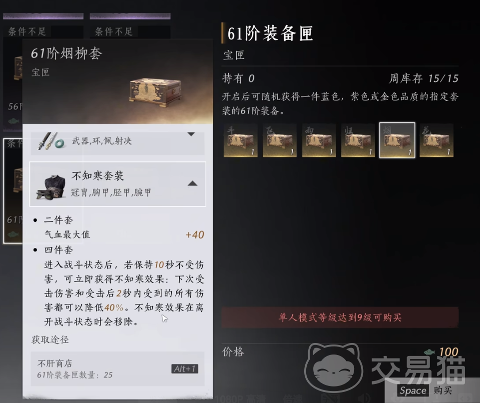不知寒套装的二件套效果是“气血最大值+40”,四件套的效果则为:进入战斗后,若保持10秒不受伤害,可激活“不知寒”效果,下次受击伤害以及受击后2秒内的所有伤害降低40%。不知寒效果会在离开战斗时移除。这是一套减伤门坎型的套装,无论是PVE还是PVP,所有流派都可以使用,收益极其稳定,特别适合高操作玩家选用。