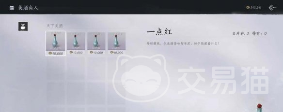如果想要获得它,必须要前往隐月山,在这里找到不羡仙的美酒商人,这个商人的隐藏地点还是比较隐秘的,在市井之中,大家必须要保持耐心,来仔细的寻找,找到之后就需要购买它出售的所有酒,一点红。