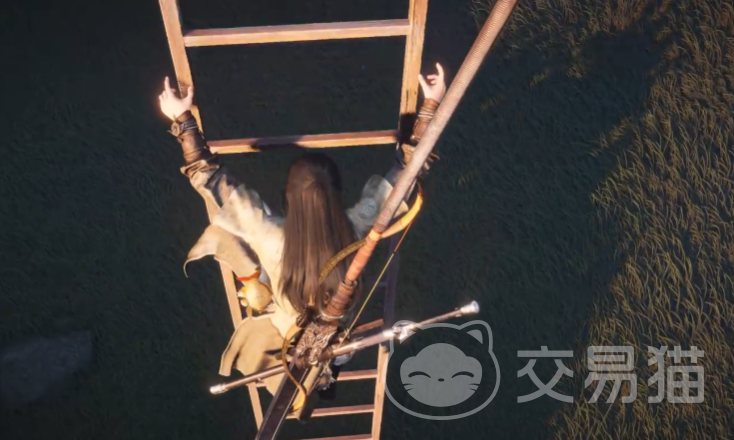 当然如果你不想跳跃的话,也可以在树木的旁边放一个梯子。就能够直接爬上去,不过这样的好处就是不用来回反复跳跃。毕竟有可能好几次跳跃时都采摘不到,所以要拿一个高度比较长的梯子。爬到一定高度后伸手就能踩到红花了。