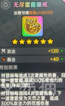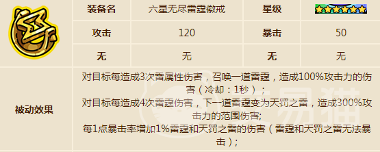 在针对目标每造成4次雷霆伤害之后,那么下一道雷霆就会直接变成天罚之雷,此时就会造成300%的攻击力范围性伤害。每一点暴击率都可以得到1%的雷霆,还有天罚之雷的伤害,但是玩家需要知道这两者是没有办法暴击的。