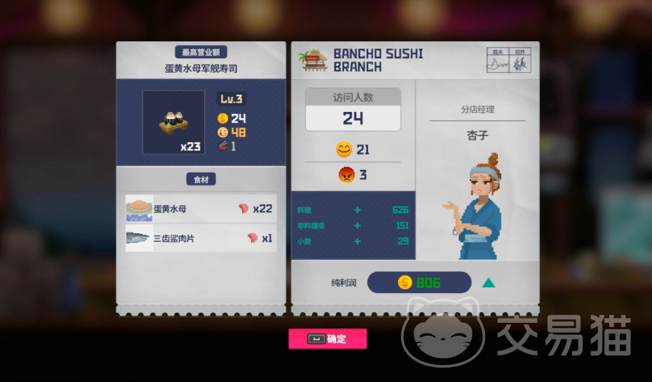 为了让店铺能够尽快升级,玩家们需要尽量的提升烹饪的味道值,也就是说需要尽量把烹饪的等级给提上来,这样才能够尽快提升餐厅的等级。但如果暂时无法升级的话,玩家们就需要运用手头现有的资源来尽可能多赚一些钱,其中最好的方式就是上一些性价比比较高的菜品,小编在这里推荐玩家们游戏前期的时候多准备一些绯红鱼卷。