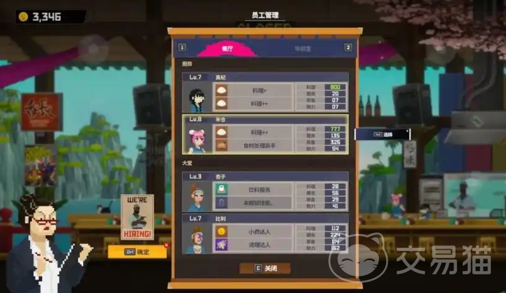 同时为了能够维持店铺的运转,尽快的满足客人的需求,玩家们还需要多聘请一些员工,然后把他们安排到合适的岗位上,比如说有的员工特别会清理盘子,那么大家就可以安排他们去大堂,这样的话一旦客人吃完离开,他们就马上能把桌子收拾干净,然后来迎接下一位客人。