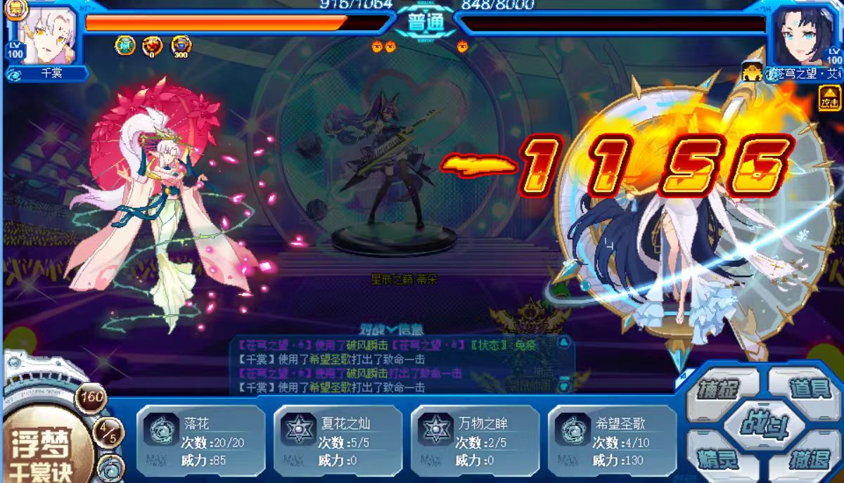 第2个面对的是艾希斯,他只吃自然系技能的伤害,每回合有吸血250,还有强控技能,可以用四九开出锁伤之后慢慢去打,也可以用千裳来进行单挑,容易失败的地方在于连续开强化,如果千裳配置不高,很容易因为连续暴击而死掉,同样可以用送草王后卡斯伯再磨过去。这里还有一个技巧,那就是优先将卡斯伯的免死消耗掉,再去消耗草王的盾。