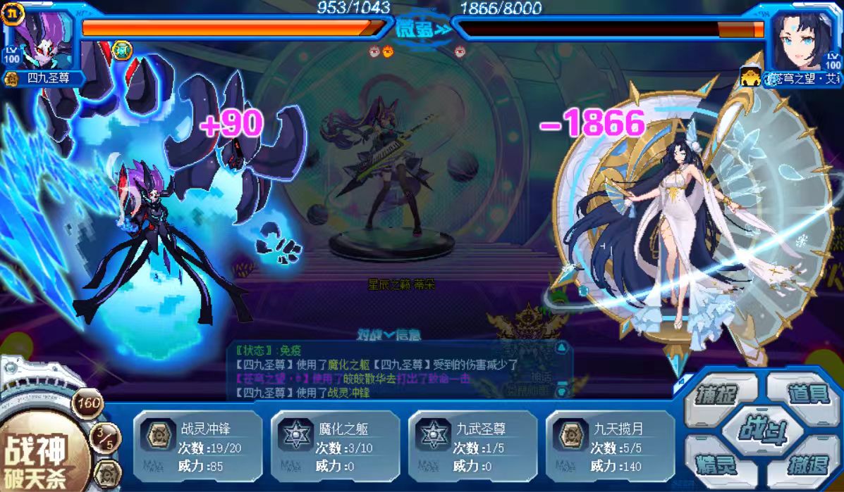 第3个和萨特进行战斗,属于单精灵挑战,同样是用四九来进行对战,也是目前最稳的打法,站桩也可以轻松战胜,如果49的配置不够用,圣骑赫里斯也是可以的。第4个是安卡,安卡能够抽取我方能力提升状态,每回合全属性加1,用特朗或者是圣普都能磨过去。第5个也是最后一个蒂朵,它的高概率闪避比较头疼,每回合开始时概率睡眠控。蒂朵不愧是pve的神级精灵,作为伙伴是得力助手,作为boss很令人头疼。可以用草王送死来免控一次,在接下来用技能阴晴圆缺和悲欢离合封攻击技能,封属性技能就可以了。