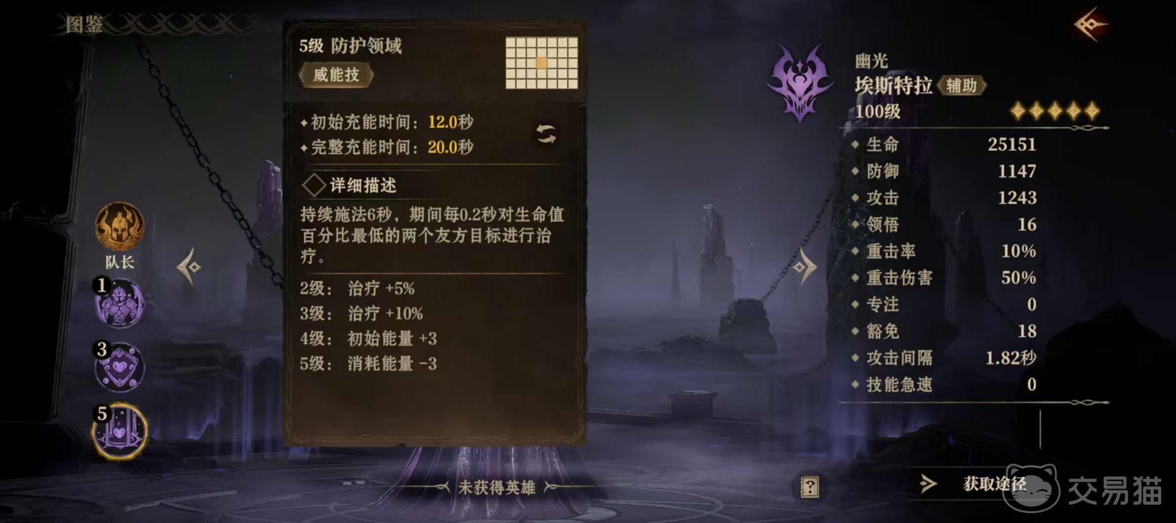 首先要明确的是埃斯特拉自身的定位,它是一名幽光辅助英雄,具备治疗队友的能力,在战斗开始时标识队友,使其受到的治疗和护盾效果增加,在pve方面有着非常广泛的应用,几乎所有的pve活动,都可以让她来出战。自身技能方面,队长技为生命光环,在历练之域战斗中,提升所有友方目标30%的最大生命值,有着一定的针对性,可以在合适的活动中选择,大幅度提高队伍生存能力。