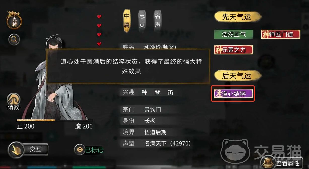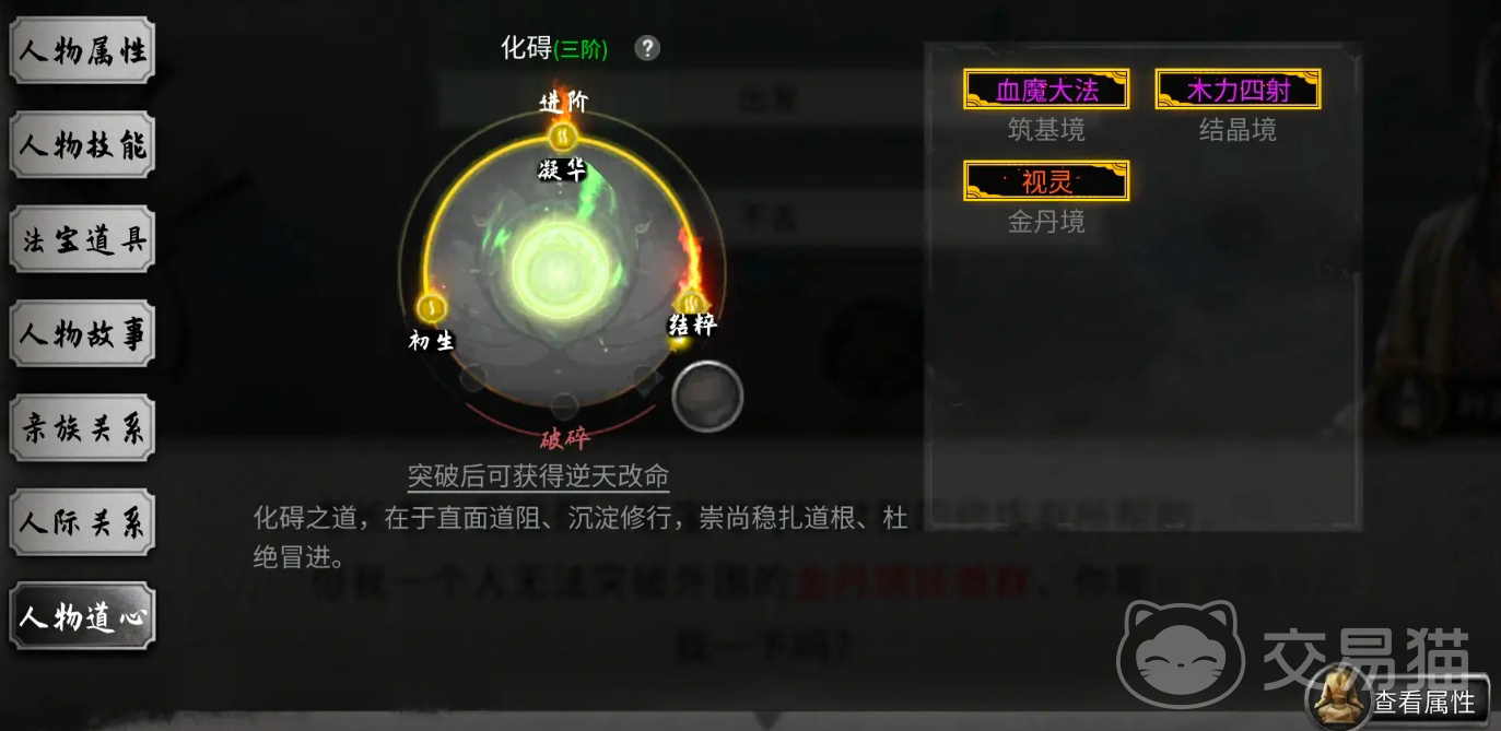 当玩家积累足够的道心果后,道心值逐渐充盈,道种便会开始蜕变,最终凝结成道心。这一过程象征着修行者的内心从动摇到坚定的转变,也是玩家修仙旅程中重要的里程碑。凝结出道心后,玩家不仅能够获得角色内在属性的提升,还能开启全新的系统培养天骄。