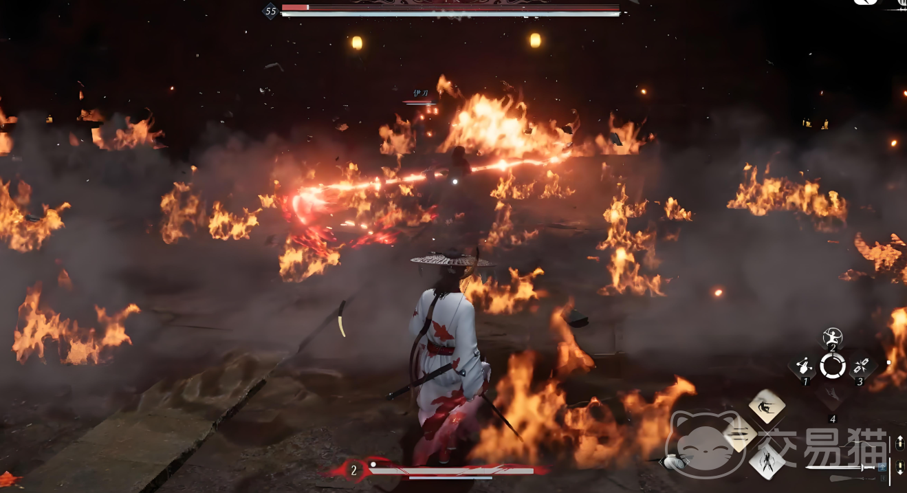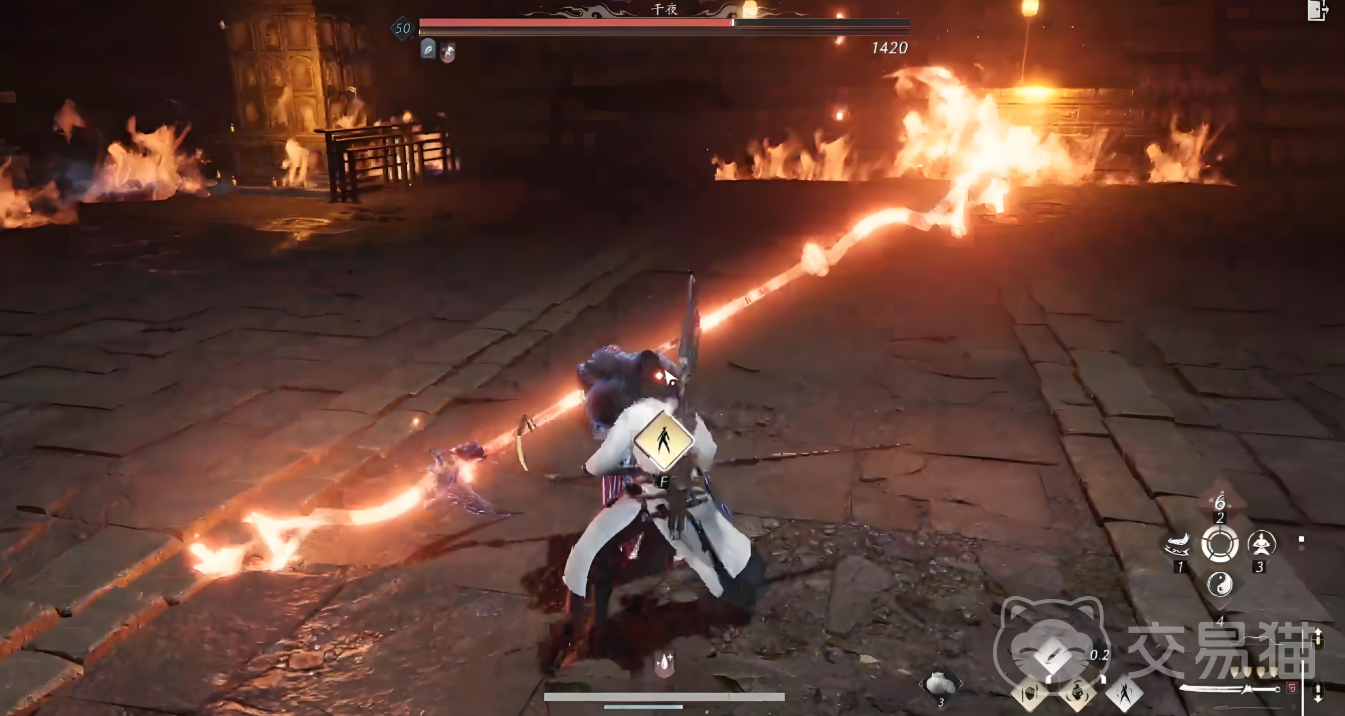 玩家在挑战千夜时,可以选择使用积矩九剑作为主武器,扇子作为副武器,在千夜的第一个阶段,在躲避其镰刀攻击的同时,用积矩九剑持续给千夜造成伤害,当千夜进入第二阶段后,依旧如此操作,当自己的血量不佳时,使用扇子给自己回复血量,以保证有持续作战的能力。