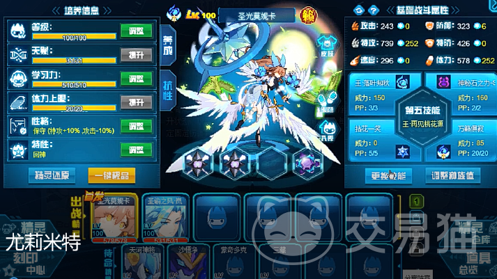 飞行超能系BOSS,14000点血量,必先,封属,天生攻击+2。每回合无视抗性吸血300点,受到攻击后使己方必定害怕。其150大招“神钢扶摇”让对手2回合属性技能无效,属性技能“散云迅影”强化翻倍、下2回合必定暴击,1回合闪避所有非必中技能并恢复部分血量。