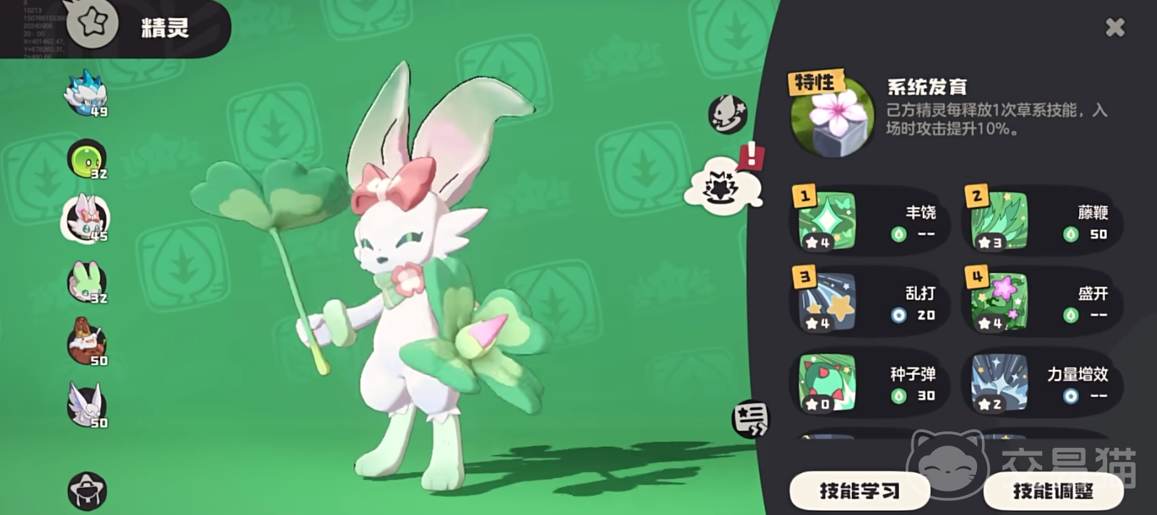 洛克王国手游中的春花兔是一只可爱而强势的草属性精灵,作为三阶进化形态,她凭借自身独特的技能体系被部分玩家戏称为“一拳超人”。那么,洛克王国手游春花兔怎么样?对于喜欢草属性或对操作有信心的玩家来说,春花兔值得一试。接下来就为大家带来春花兔的详细强度评测,看看她是否值得培养吧!