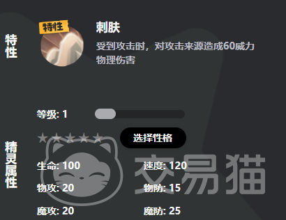 该精灵的特性叫做刺肤,当你受到攻击时,对敌人造成60点伤害反弹,有点类似于反伤甲。然后可以从一只很小只的石蜥,进化成为令人恐惧的存在。血脉技能叫做能量刃,可对敌人造成物理伤害,每命中一次都会叠加三十多威力。