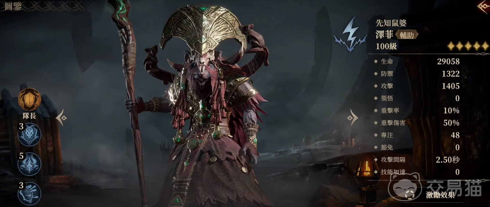 萨格米尔是阵容的多功能辅助,他能够降低敌方攻击力,同时为友方威能技能恢复能量,还具有一定的回血能力,堪称万金油角色,非常适合推图使用。
