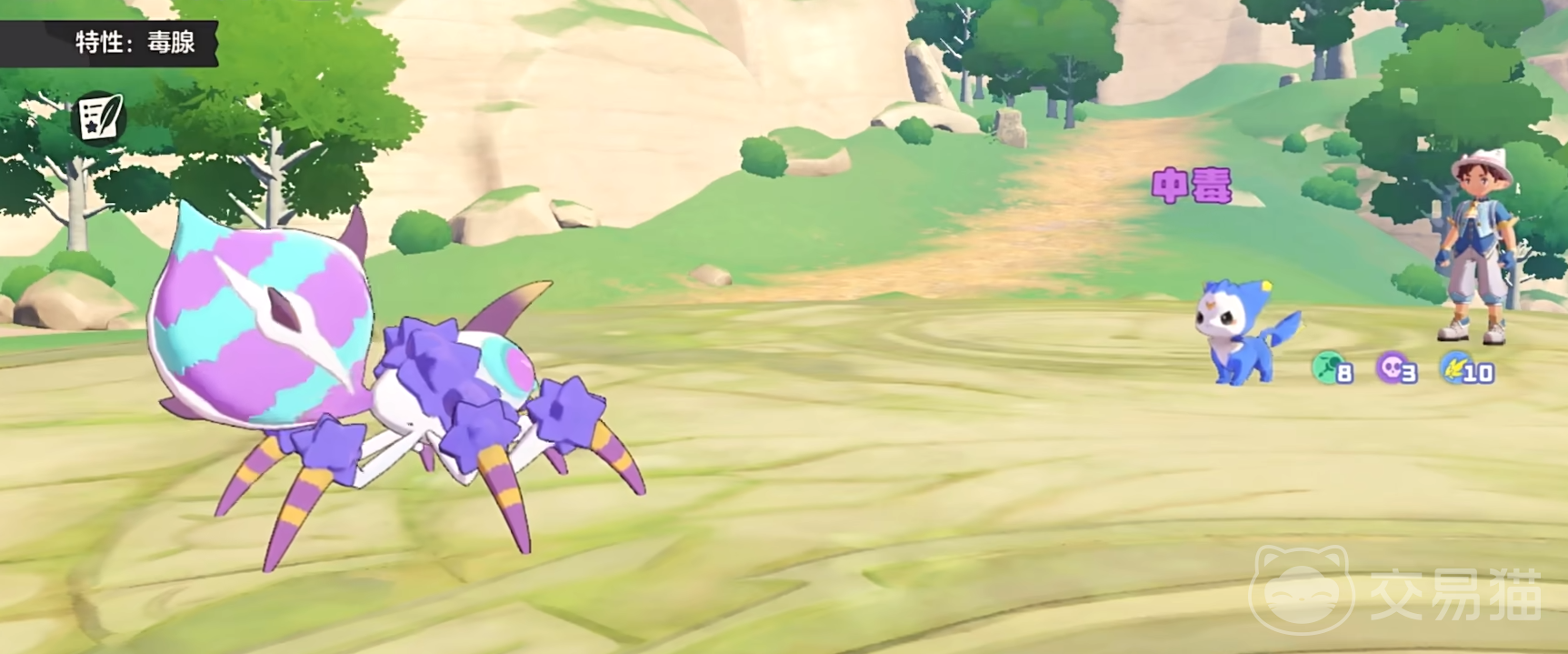 芋香巨角蛛是一只毒属性加成宠物,核心特性是“毒线”。使用技能【虫鸣】、【毒孢子】和【聚能】时,可以给敌方叠加三层中毒效果。技能推荐【攻击场地】,该技能能为每层攻击印记增加10点威力,同时配合【毒孢子】叠加更多中毒buff,是一个非常优秀的毒辅助。